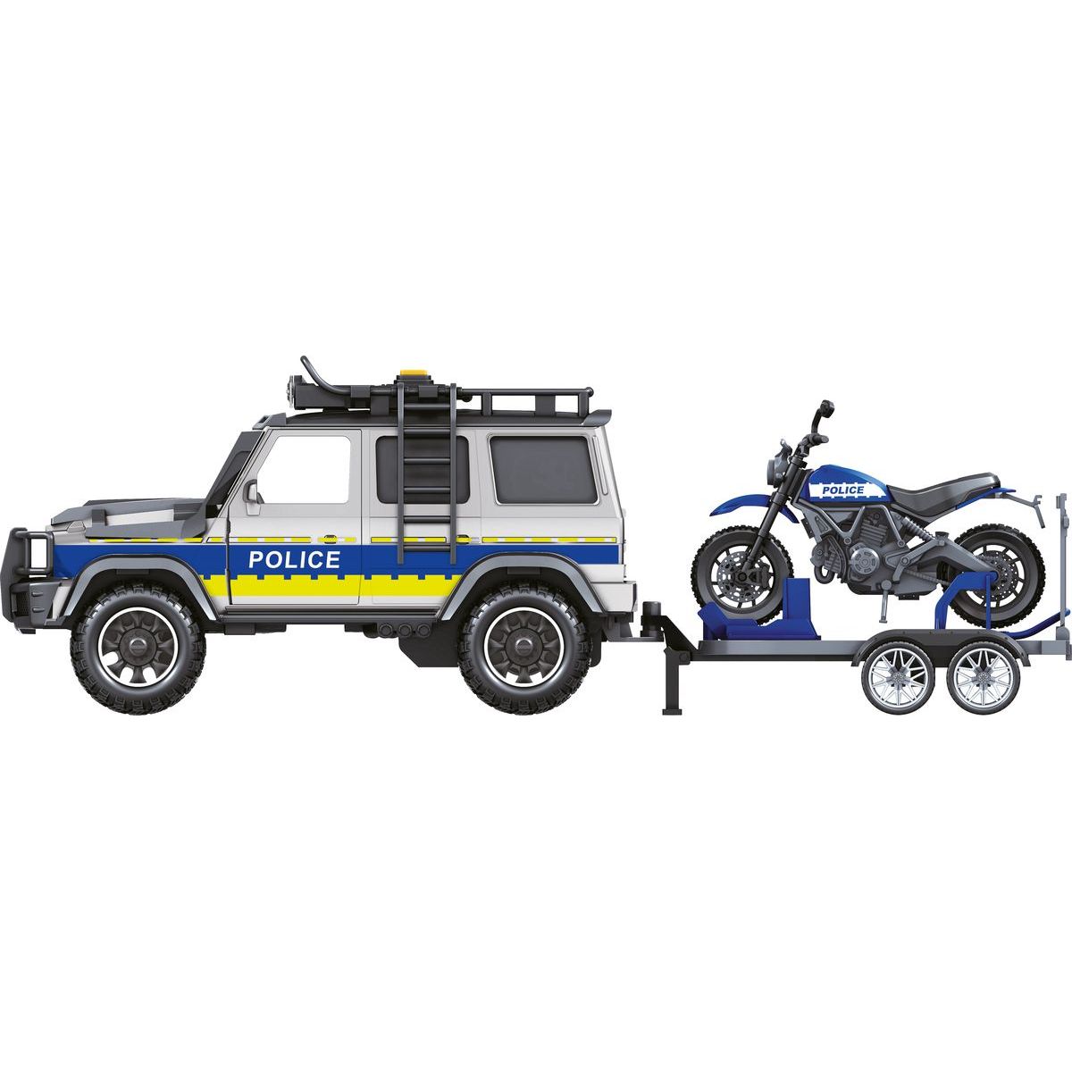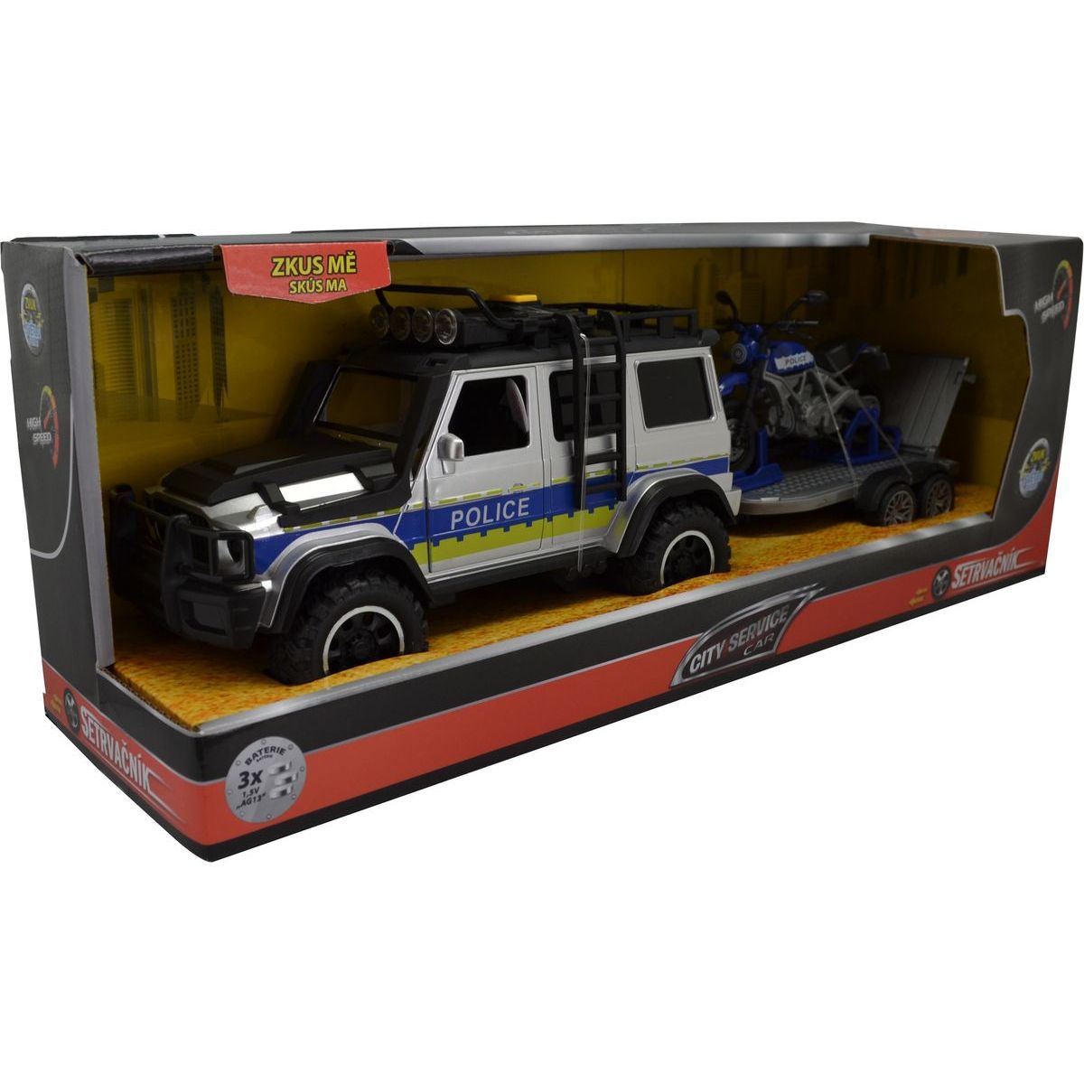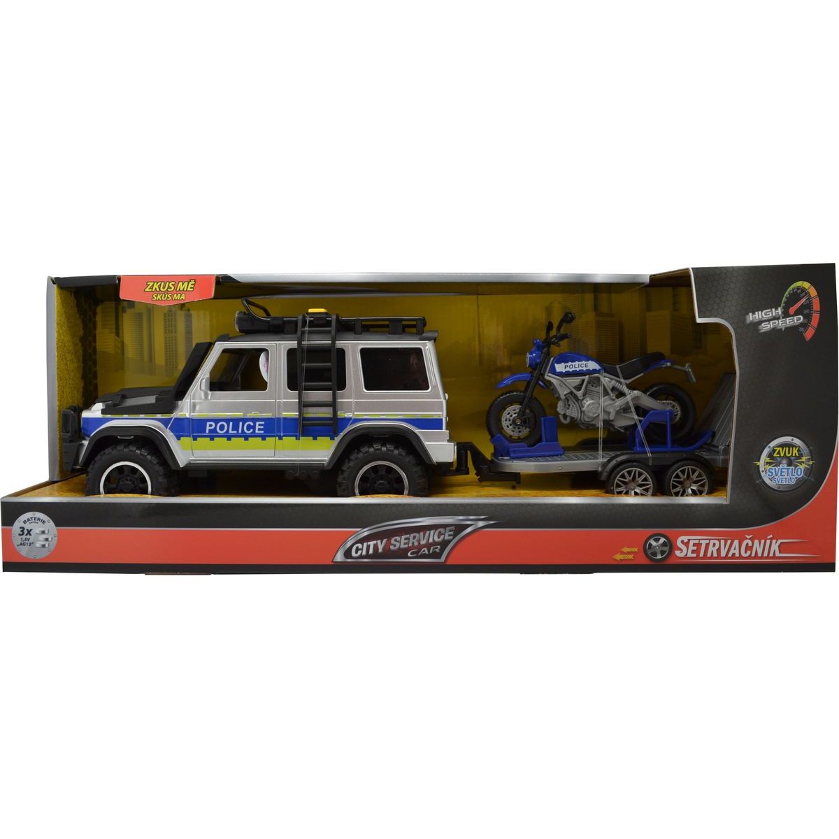 Sparkys CITY SERVICE CAR - 1:14 - Policejní auto s přívěsem a motorkou (se zvukem a světly)