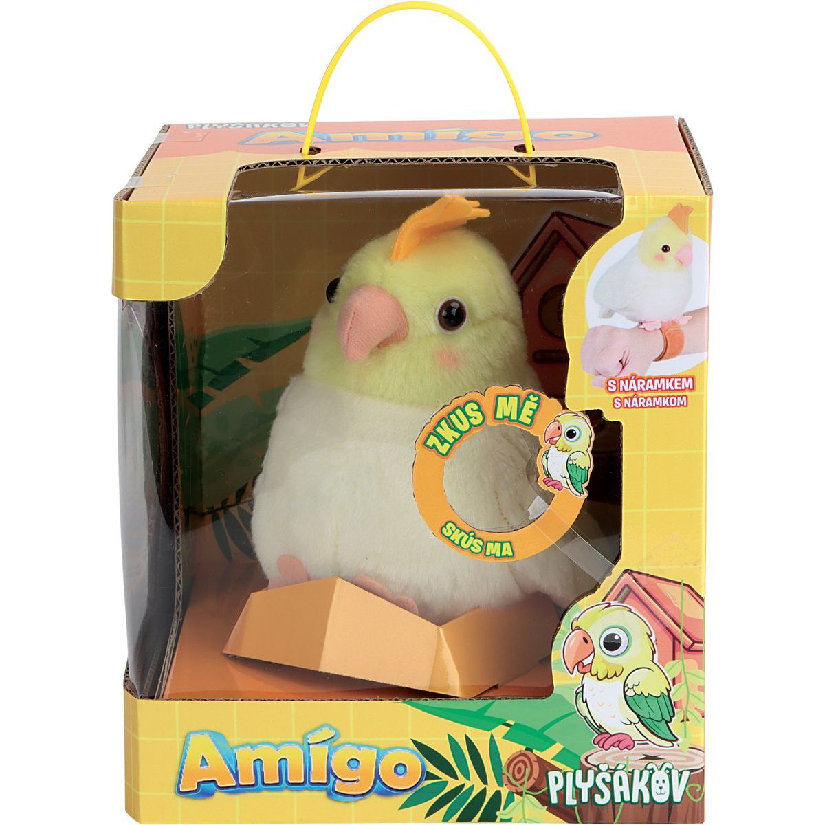 Zažijte s interaktivním papouškem Amígo spoustu zábavy! Tento plyšový kamarád nejenže vydává veselé zvuky, ale také umí nahrávat a opakovat vše, co mu řeknete. Díky tomu se stane skvělým společníkem pro děti, které rády objevují nové zvuky a komunikují s hračkami. Součástí balení je stylový náramek, který potěší každého malého dobrodruha. Papoušek funguje na tři knoflíkové baterie typu LR44, které jsou již v balení připraveny k použití. Hračka je určena pro děti od 3 let a díky svým rozměrům snadno zapadne do dětského pokoje i na cesty.