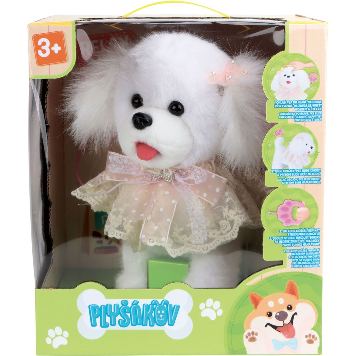 Představte si věrného kamaráda, který vás okouzlí svými živými reakcemi a veselými melodiemi – to je interaktivní pejsek Aida! Tento roztomilý maltézský plyšák ožívá pod vašima rukama – reaguje na pohlazení, vrtí ocasem, štěká a dokonce umí chodit. Stačí stisknout obojek a Aida začne procházet pokojem za doprovodu radostných melodií. Díky přiloženému vodítku můžete pejska snadno ovládat a užít si spoustu zábavy s různými zvukovými efekty. Navíc umožňuje nahrávání vlastních hlasových povelů, což přidává na interaktivitě a jedinečnosti hry. Měkký plyšový povrch spolu s pohyblivými plastovými částmi vytváří realistický zážitek, který děti nejen baví, ale také rozvíjí jejich empatii a jemnou motoriku. Ideální společník pro malé i větší dobrodruhy od 3 let, který zpestří každý den svou hudbou a pohybem.