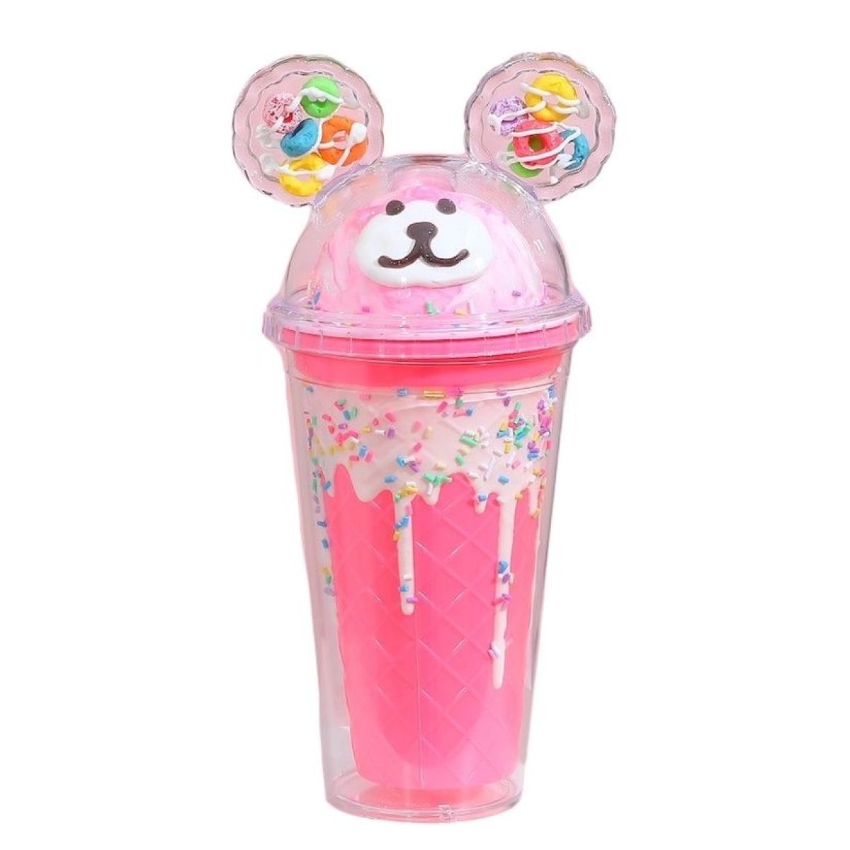 Sparkys Kelímek s víčkem a brčkem Medvídek 480ml růžový