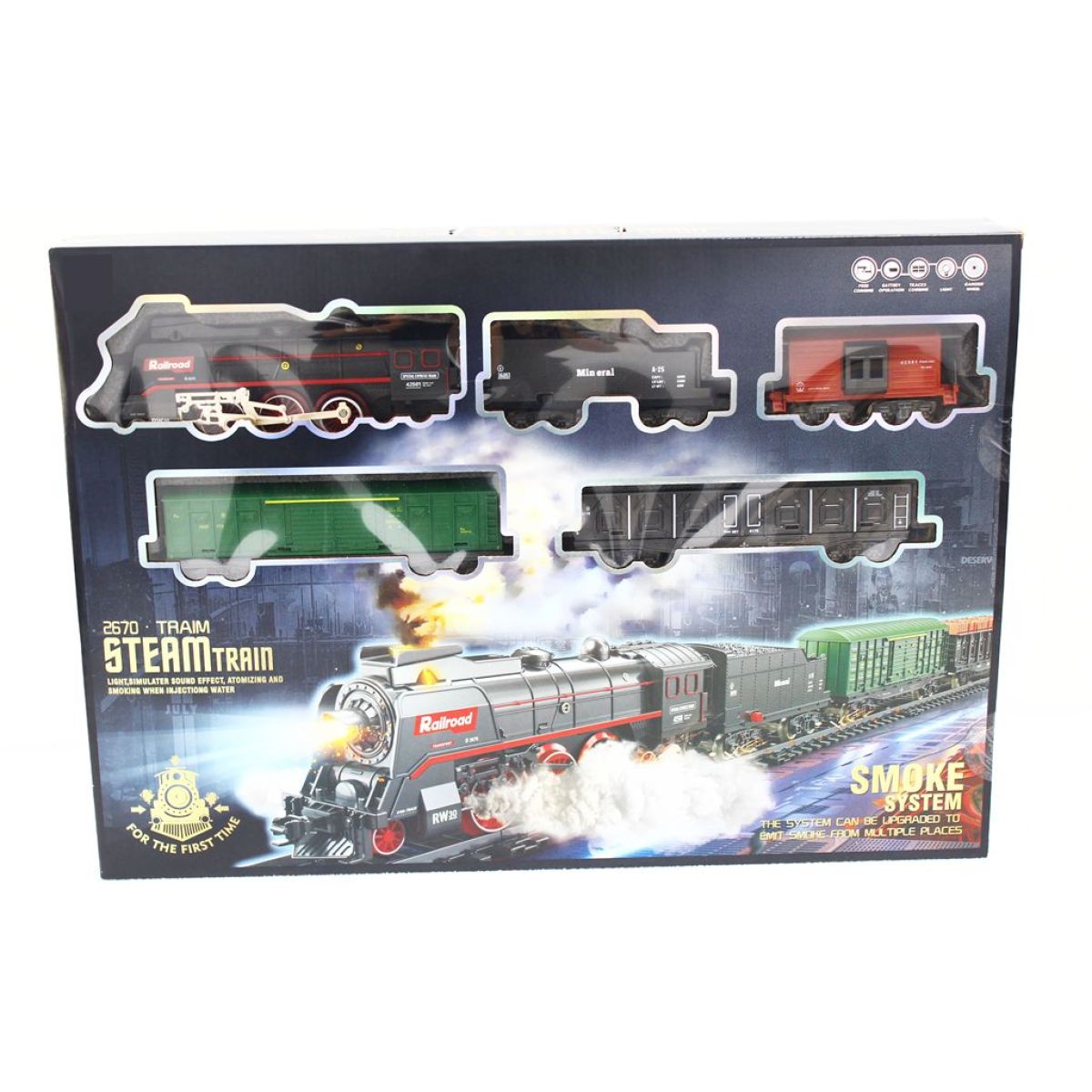 Sparkys SET Elektrická vláčkodráha - Parní lokomotiva s kouřem, světlem a zvukem na baterie 68 ks