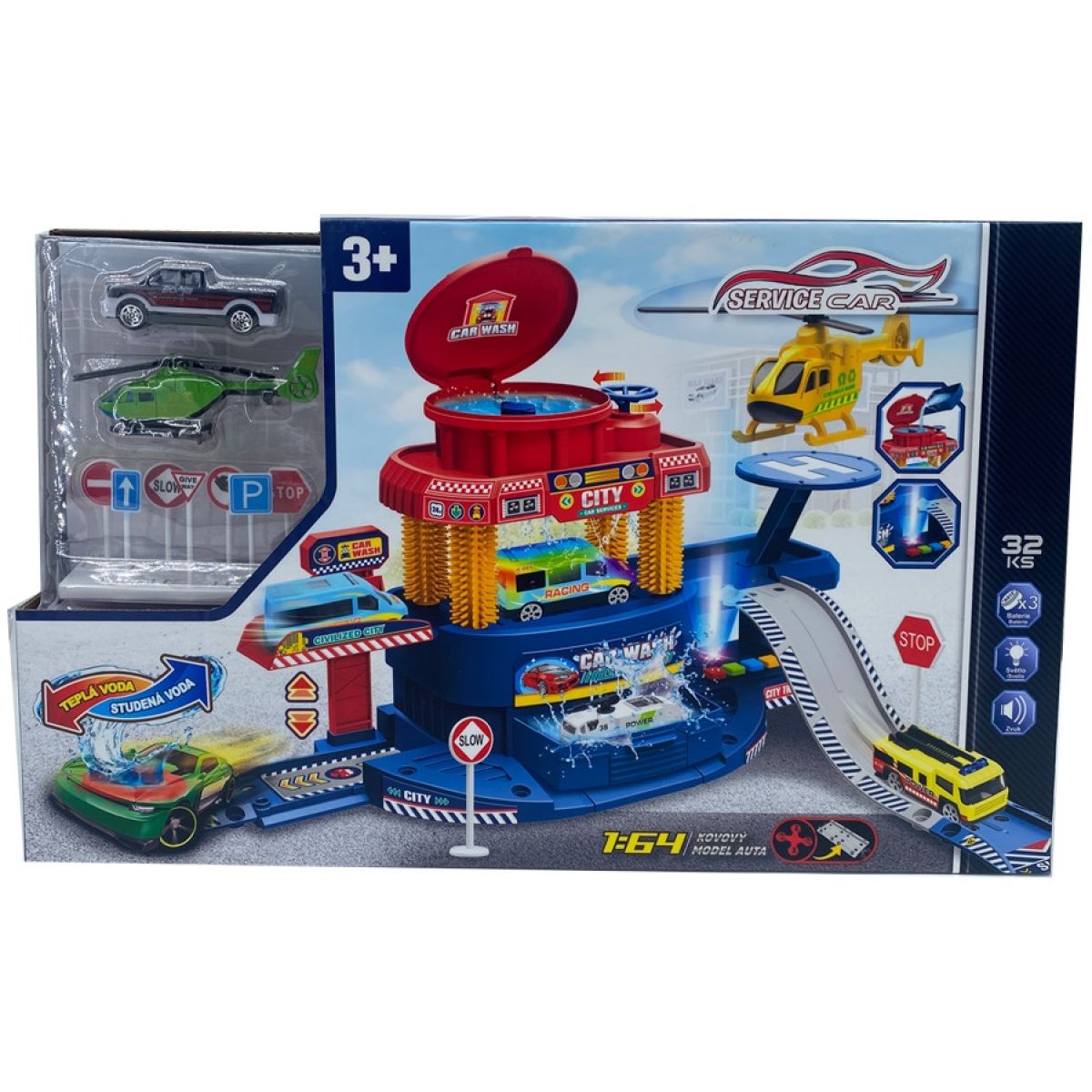 Sparkys Velký SET garáž 32 ks s autem měnící barvu a letadlem