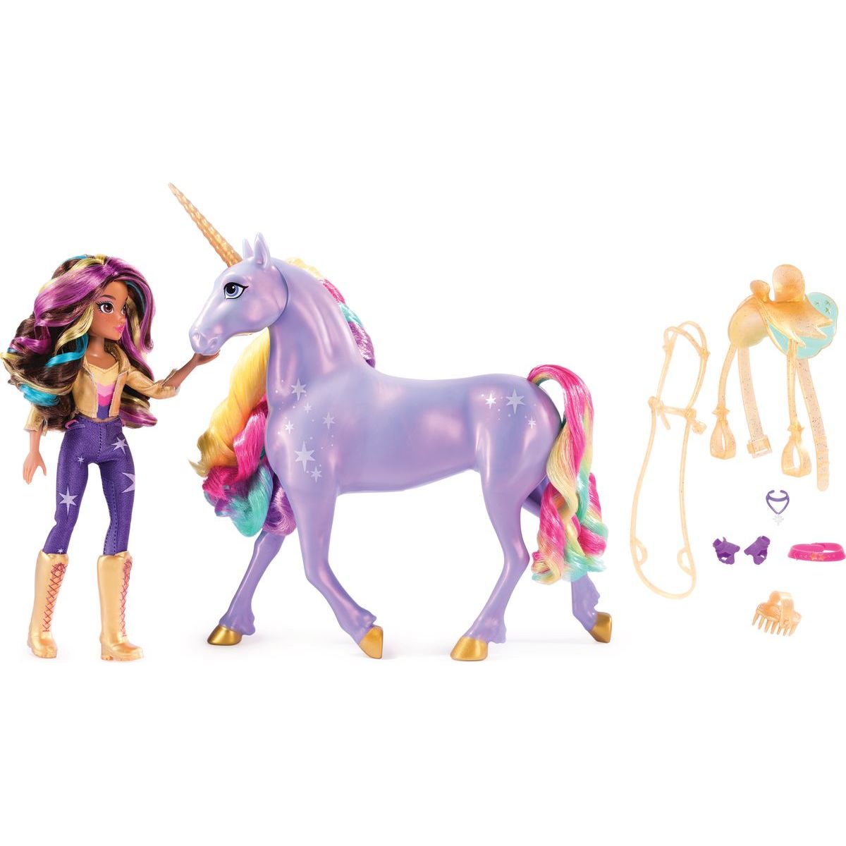 Při hraní posaďte Sofii na Polárku a jeďte za dobrodružstvím! Rozšiřte svůj svět Jednorožčí akademie o módní panenky a jednorožce (prodávají se zvlášť).