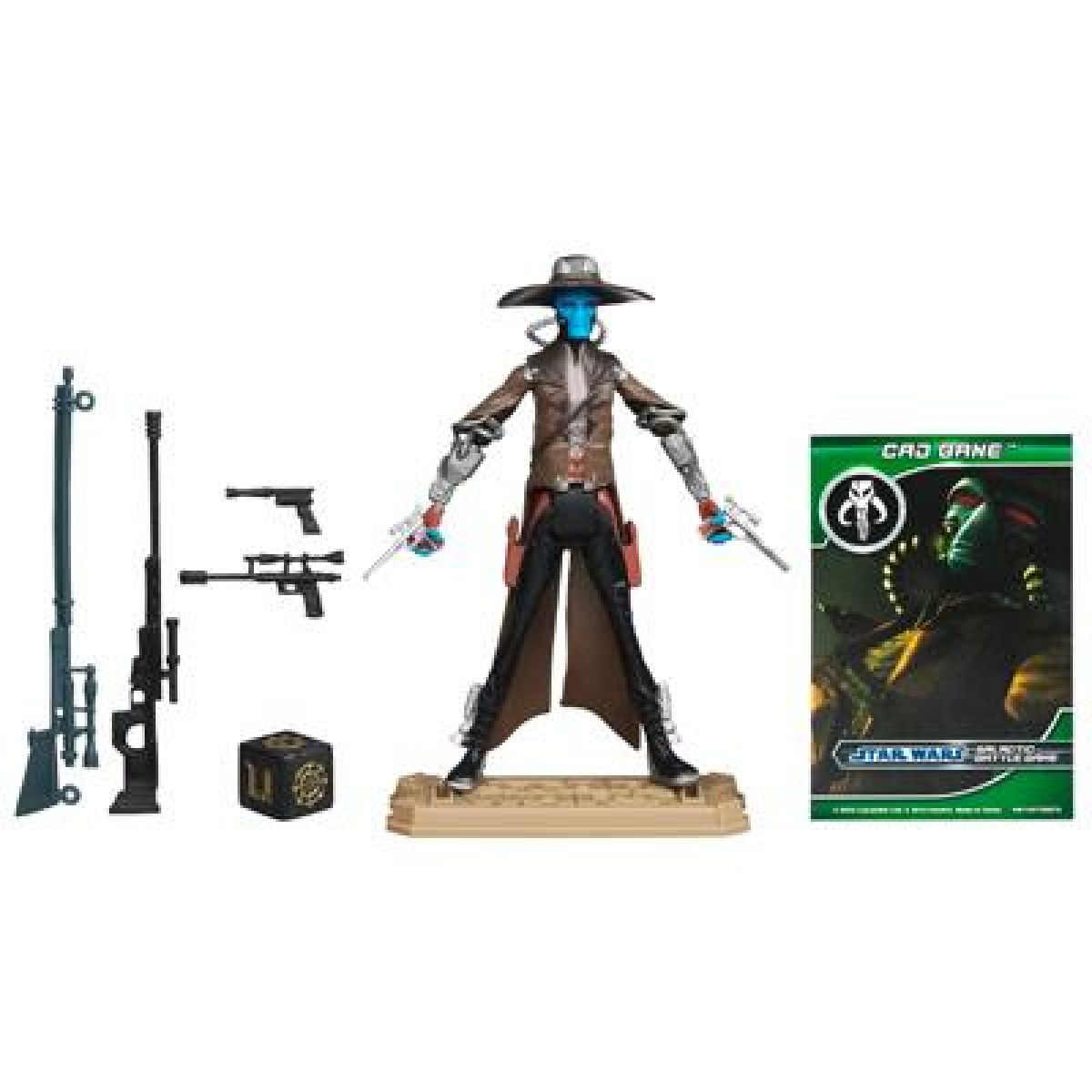 Balení obsahuje figurku se zbraní, Galactic Battle Game kartu a kostku, podstavec.