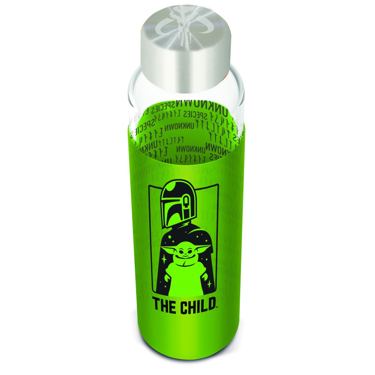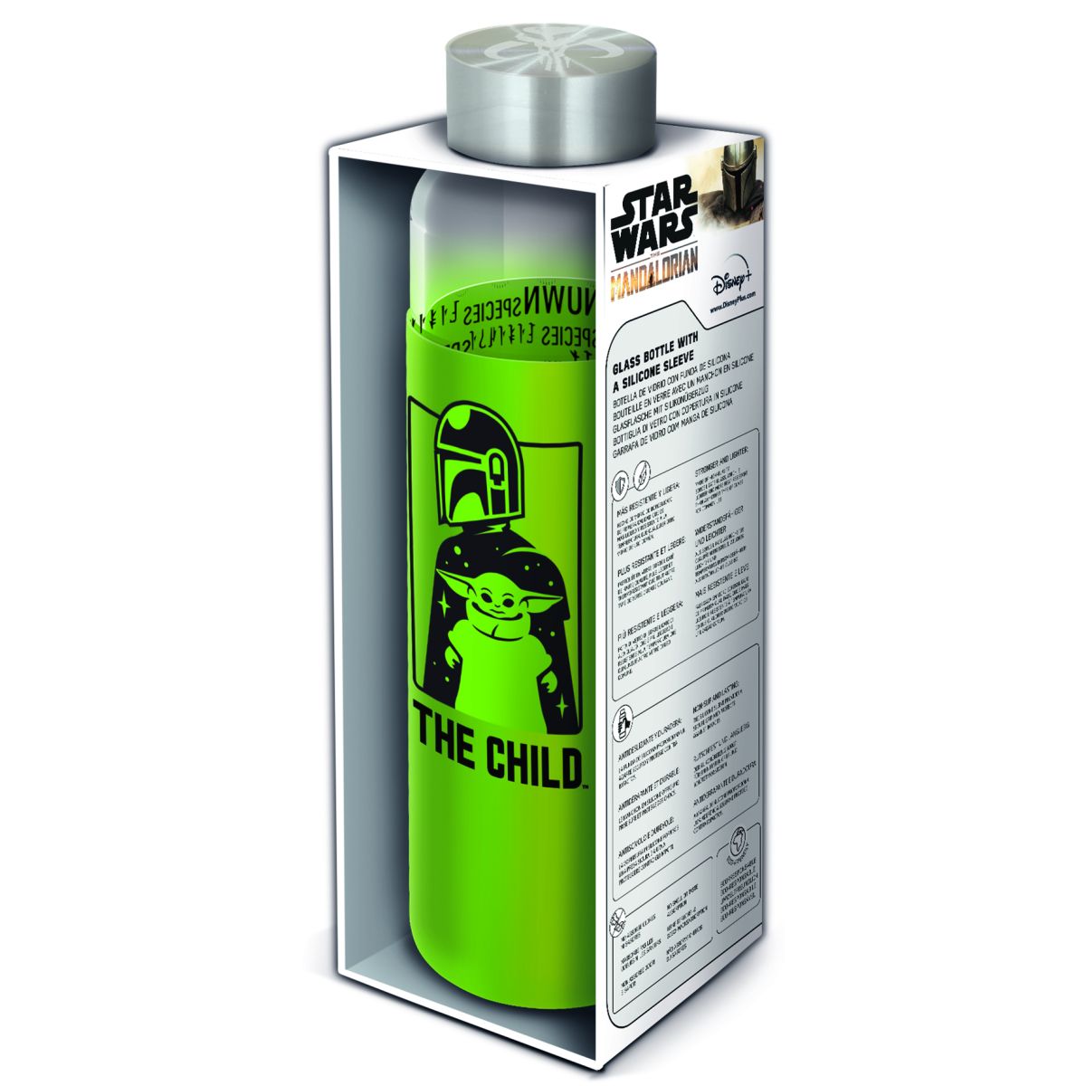 Udržujte svůj pitný režim s elegancí a motivem oblíbeného Mandaloriana! Tato skleněná láhev o objemu 585 ml je nejen praktická, ale také stylová díky silikonovému návleku s unikátním designem. Bezpečný materiál a dostatečná kapacita umožní pohodlné používání doma i na cestách. Navíc je balena v dárkovém boxu, což ji činí ideálním dárkem pro fanoušky této vesmírné ságy. Přidejte si do svého dne trochu galaktického kouzla a pijte zdravěji každý den s touto originální lahví!