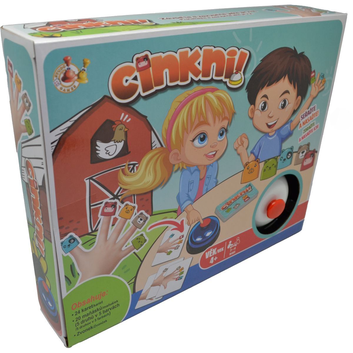 Objevte „Cinkni!“ – originální postřehovou hru od STUDO GAMES, která přináší rychlost, zábavu a rozvoj dovedností v jednom. Hráči si nasazují barevné prstové maňásky podle vzoru na kartě a ten nejrychlejší zazvoní na zvonek. Hra procvičuje jemnou motoriku, paměť a postřeh, a díky pokročilé variantě i schopnost pamatovat si složité kombinace. Ideální pro děti od 3 let i celou rodinu.