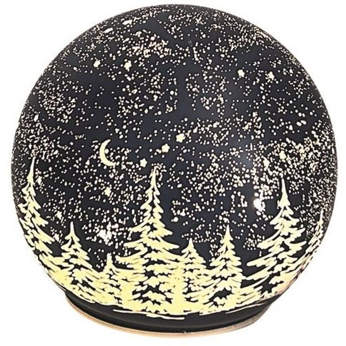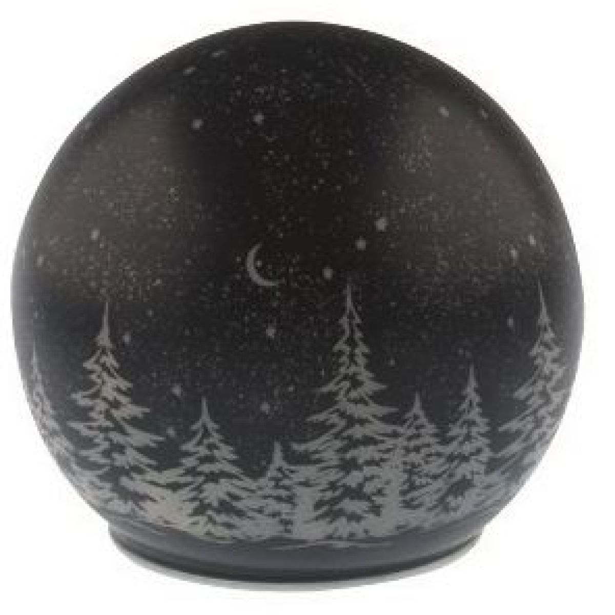 Svítící skleněná koule s motivem krajiny tmavě šedá, o 12 cm, teplá bílá, 10 LED, časovač