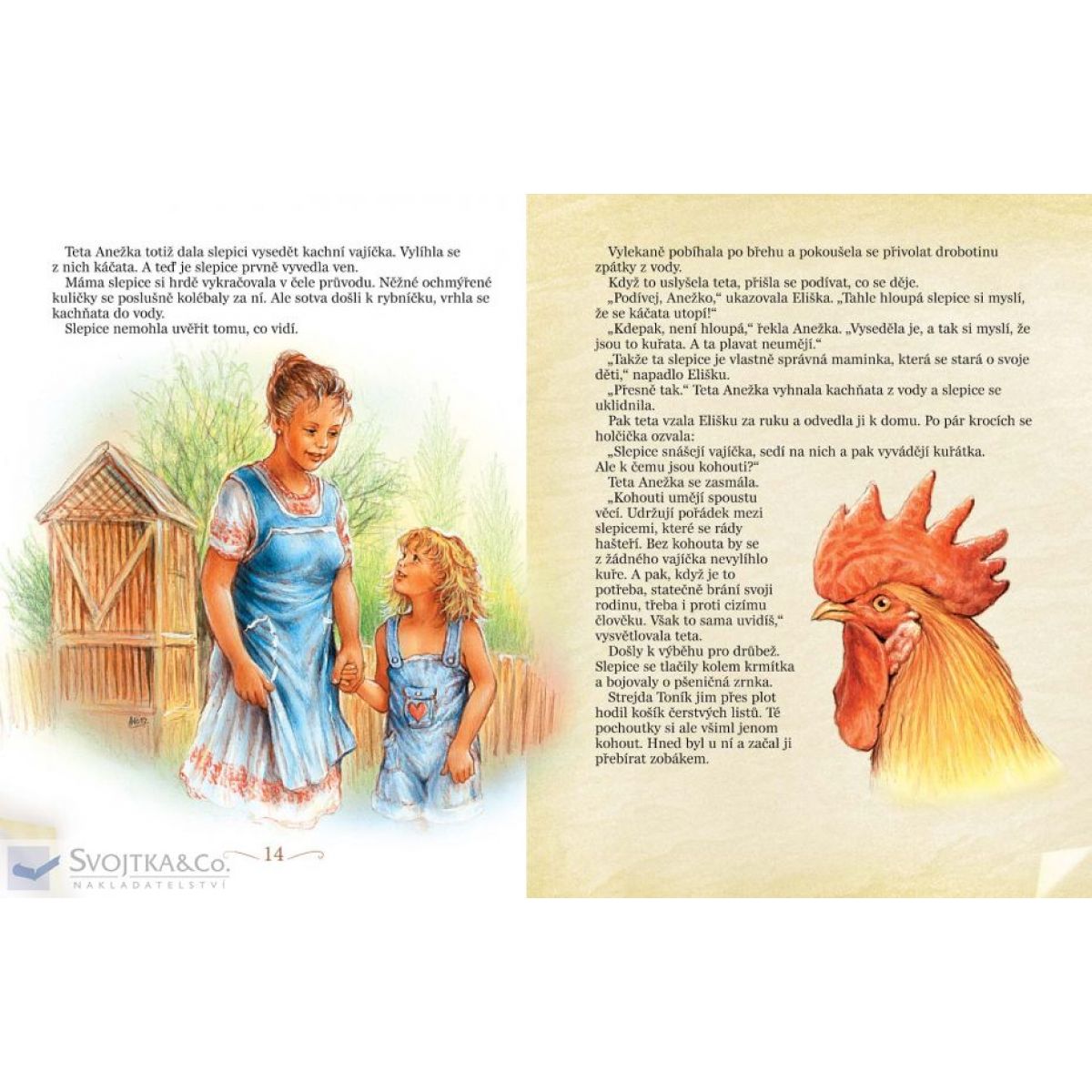 Jmenuji se Eliška. Je mi sedm a půl roku. Mám ráda tvarohové knedlíky a bábovku od mé tetičky. Poprvé jsem opustila velké moderní město, ve kterém bydlím s rodiči, a odjela jsem na venkov. Tam jsem se spřátelila se zvířátky, objevila jsem louku a les. Pojď se mnou prožít prázdniny na venkově plné dobrodružství...
