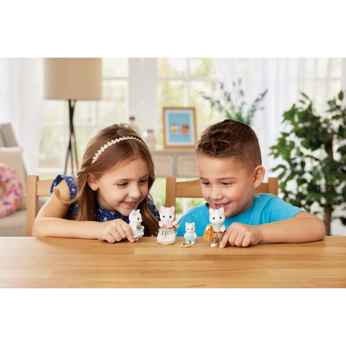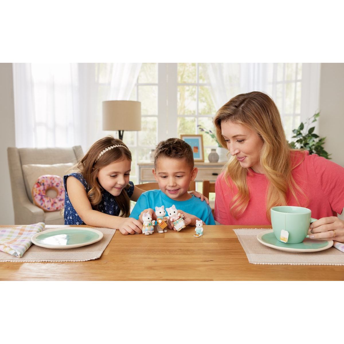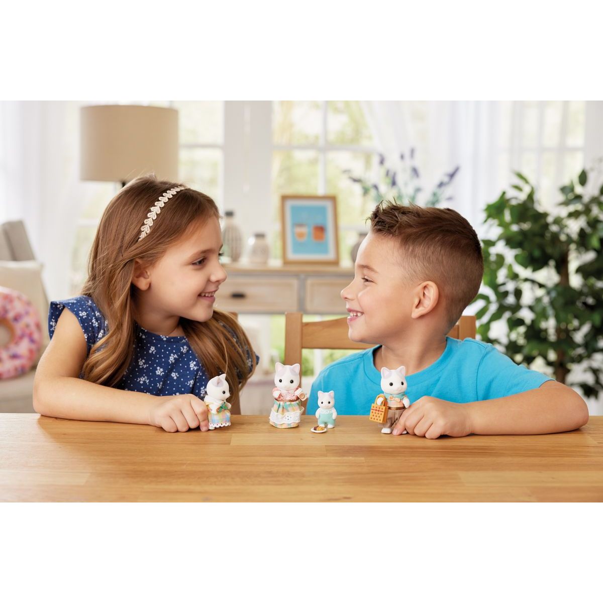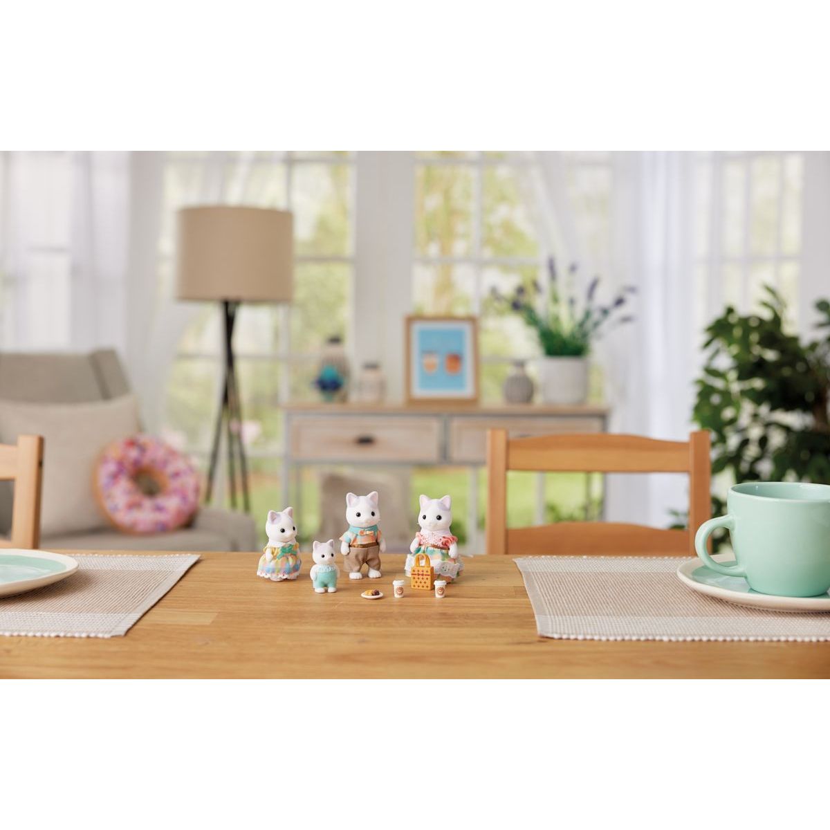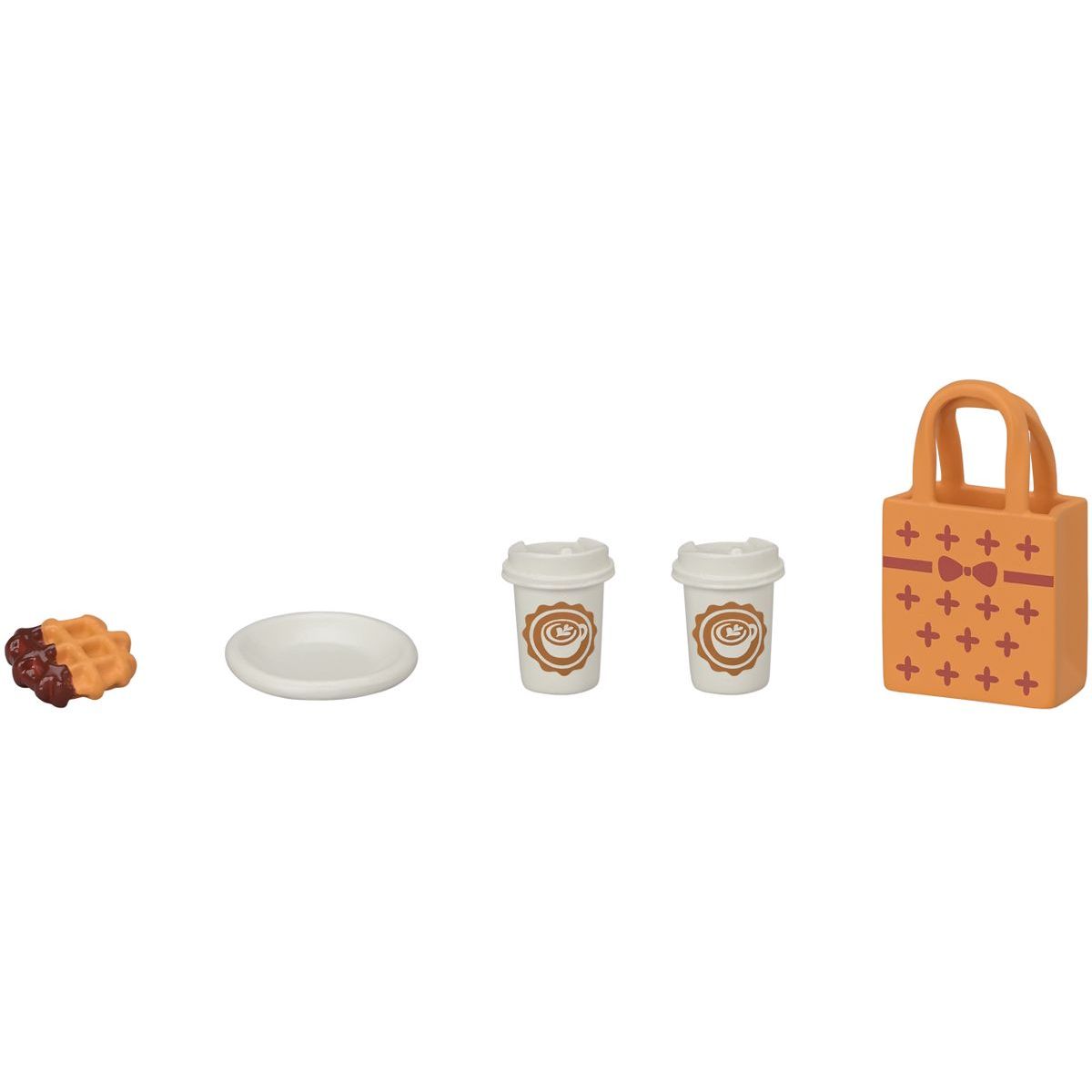 Sada obsahuje figurku tatínka, maminku, holčičku, dítě a doplňky: kelímky na pití, nákupní tašku a vafle.
