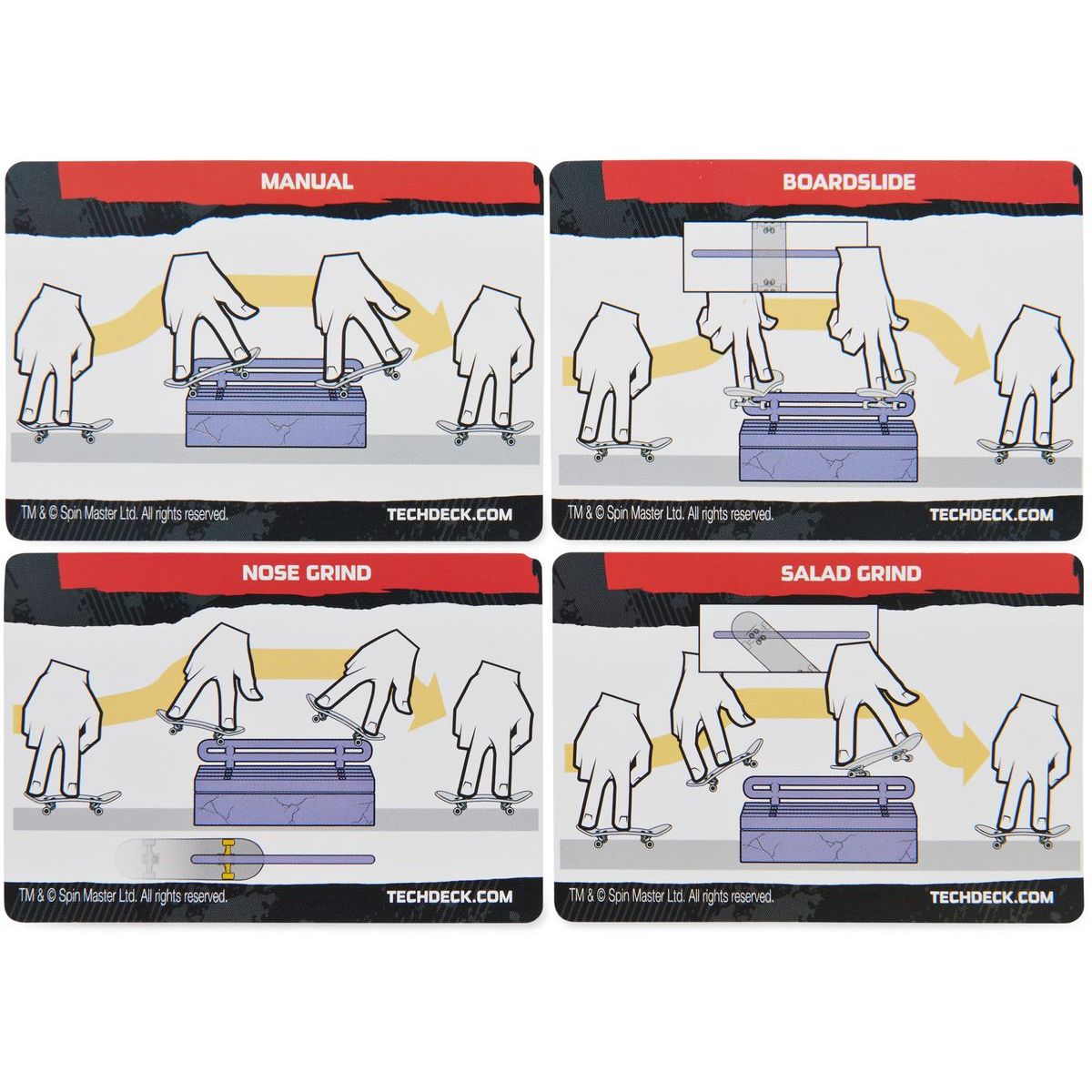 Balení obsahuje: 2 stylová sestavená prkna, 1 překážku, 4 karty s triky k učení.