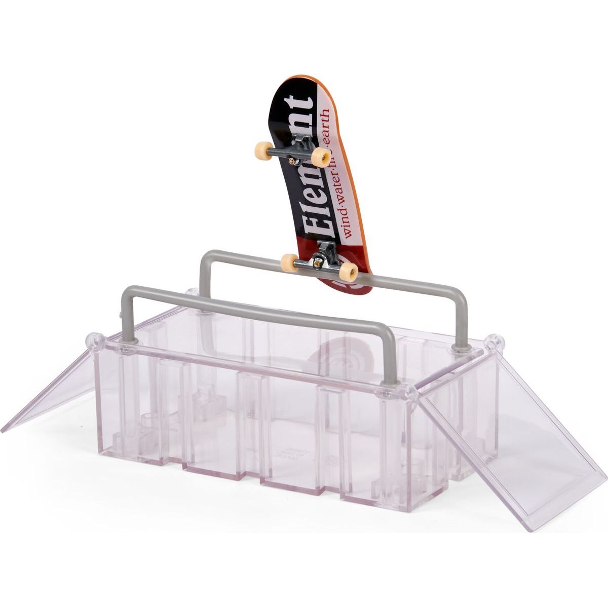 Obsahuje 1 fingerboard Tech Deck, 1 kufřík play and display, 1 krabice s panty, 2 otevírací kickery, 4 vertikální spojky, 1 pravý dvojitý kicker, 1 levý dvojitý kicker, 2 vysoké zábradlí, 1 dlouhé zábradlí, 1 návod.