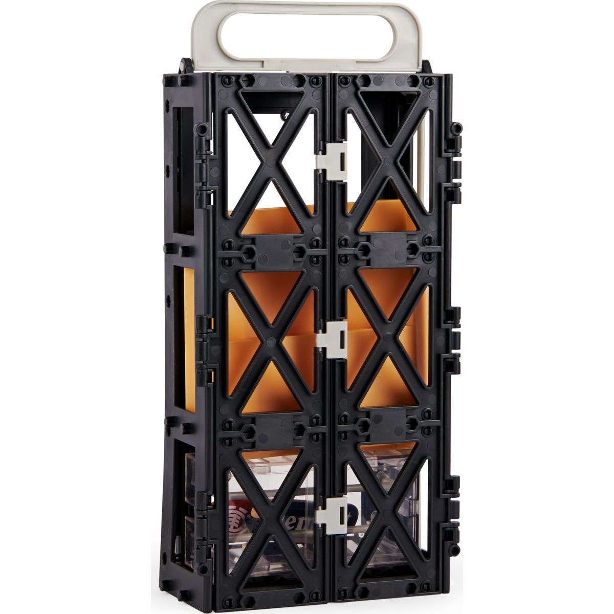 Uložte a vystavte svou sbírku fingerboardů do stylové vitríny, kterou můžete rozložit a přeměnit na rampu s funboxem a zábradlími pro skákání a grindování.