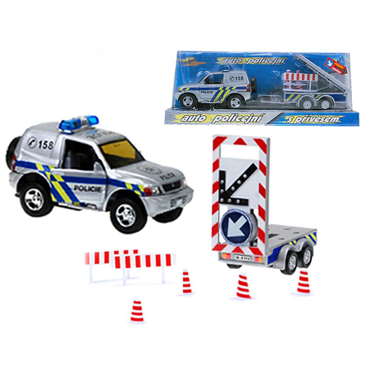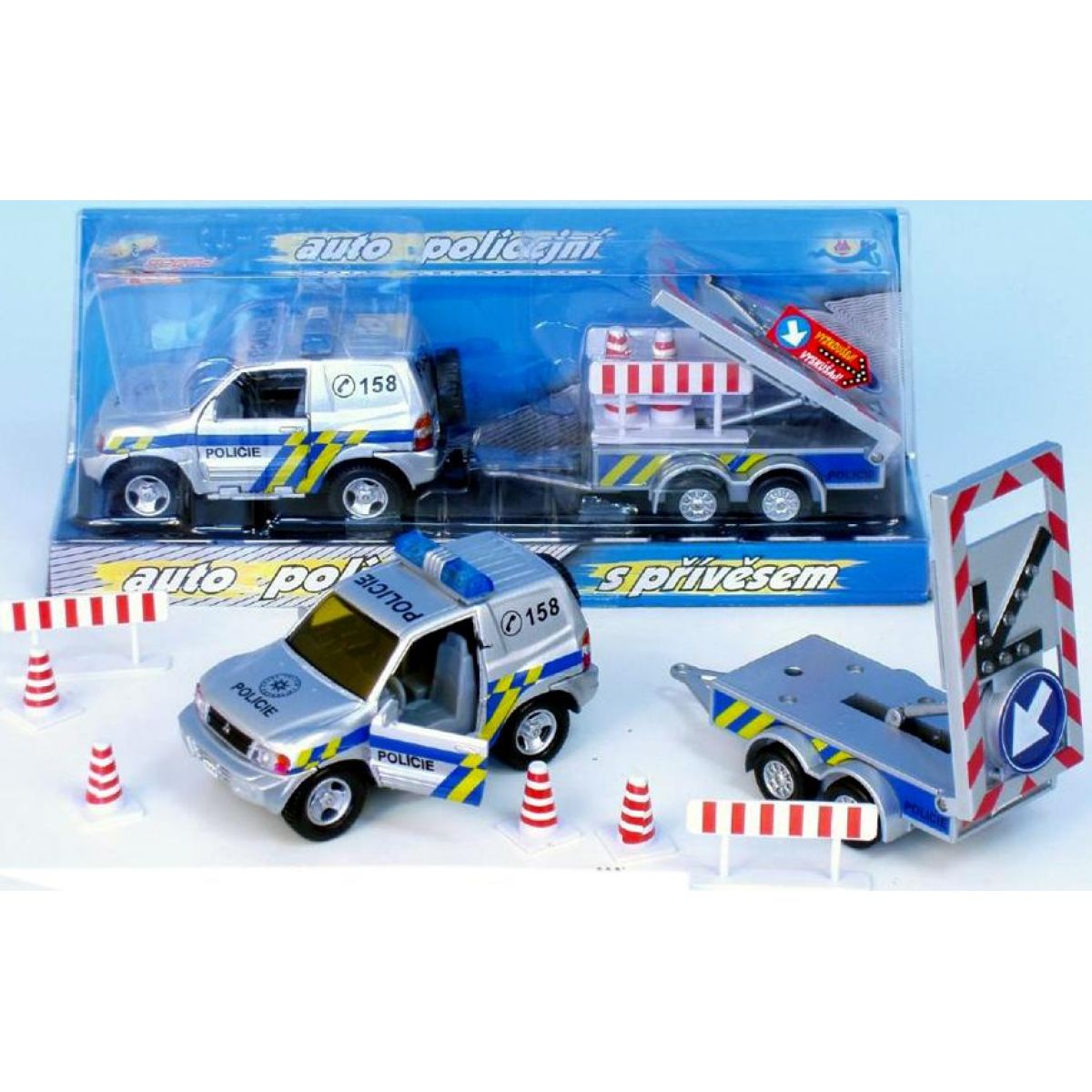 Kovový model policie Mitshubishi s přívěsem a značkami