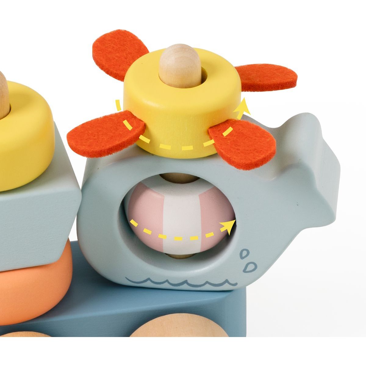 Teddies Vlak + 2 vagóny oceán dřevo tahací stavebnice 28 dílků v krabici 38x12x8cm 12m+
