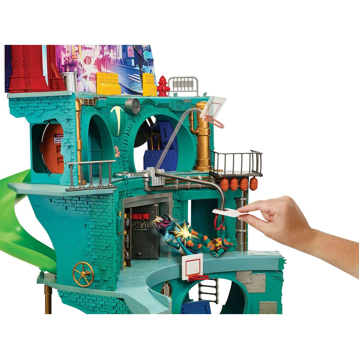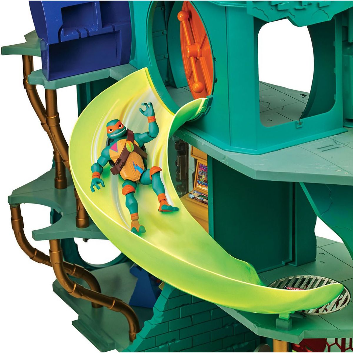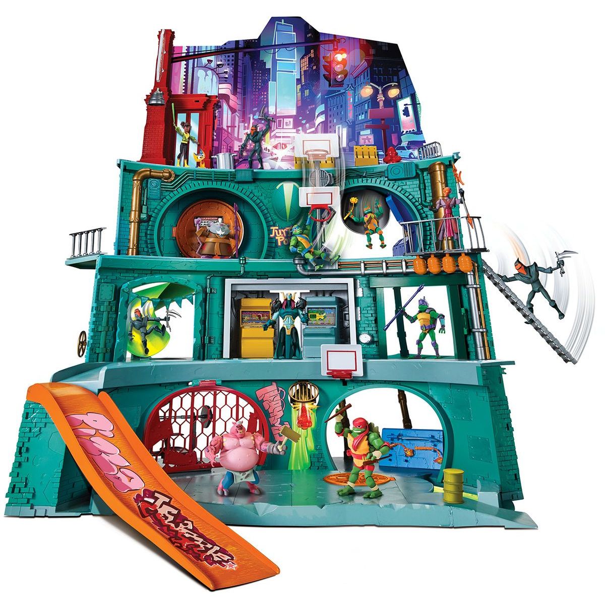Budova má čtyři podlaží, sedm místností a dvacet různých hracích prvků. Tví želví hrdinové se mohou svézt na skluzavce, tobogánu nebo si užít skateboardovou rampu či využít některé ninja doplňky, které najdou právě v této hrací sadě.