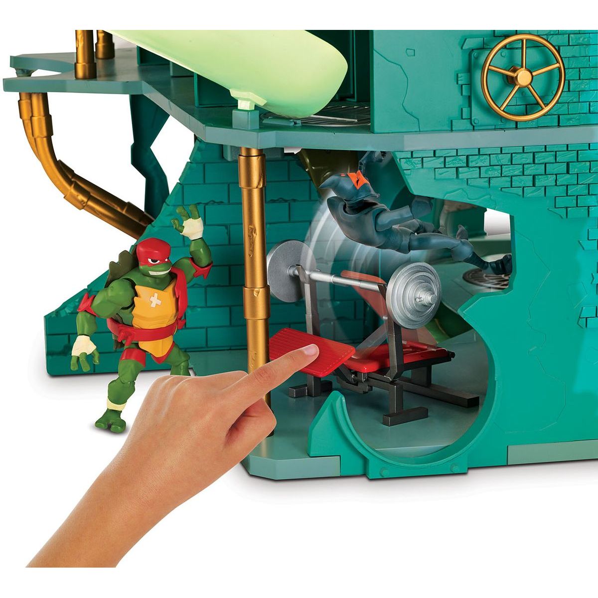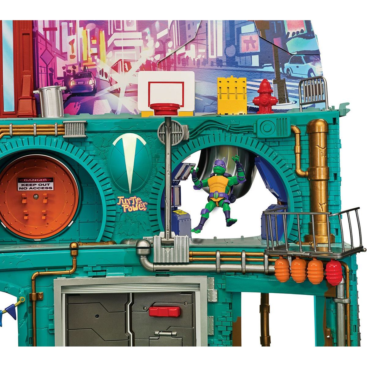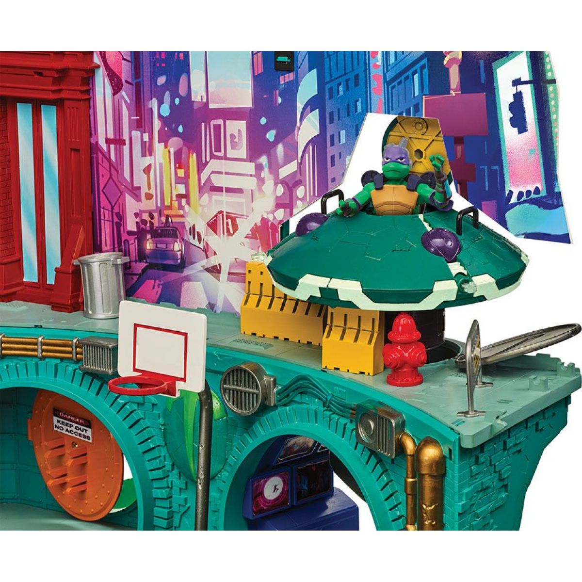 Budova má čtyři podlaží, sedm místností a dvacet různých hracích prvků. Tví želví hrdinové se mohou svézt na skluzavce, tobogánu nebo si užít skateboardovou rampu či využít některé ninja doplňky, které najdou právě v této hrací sadě.