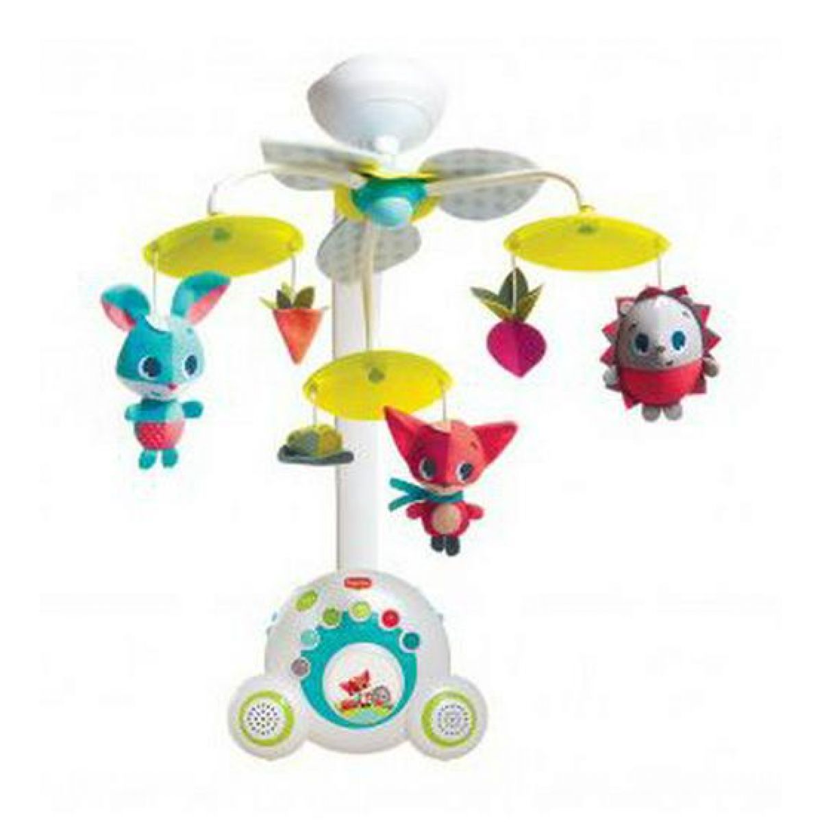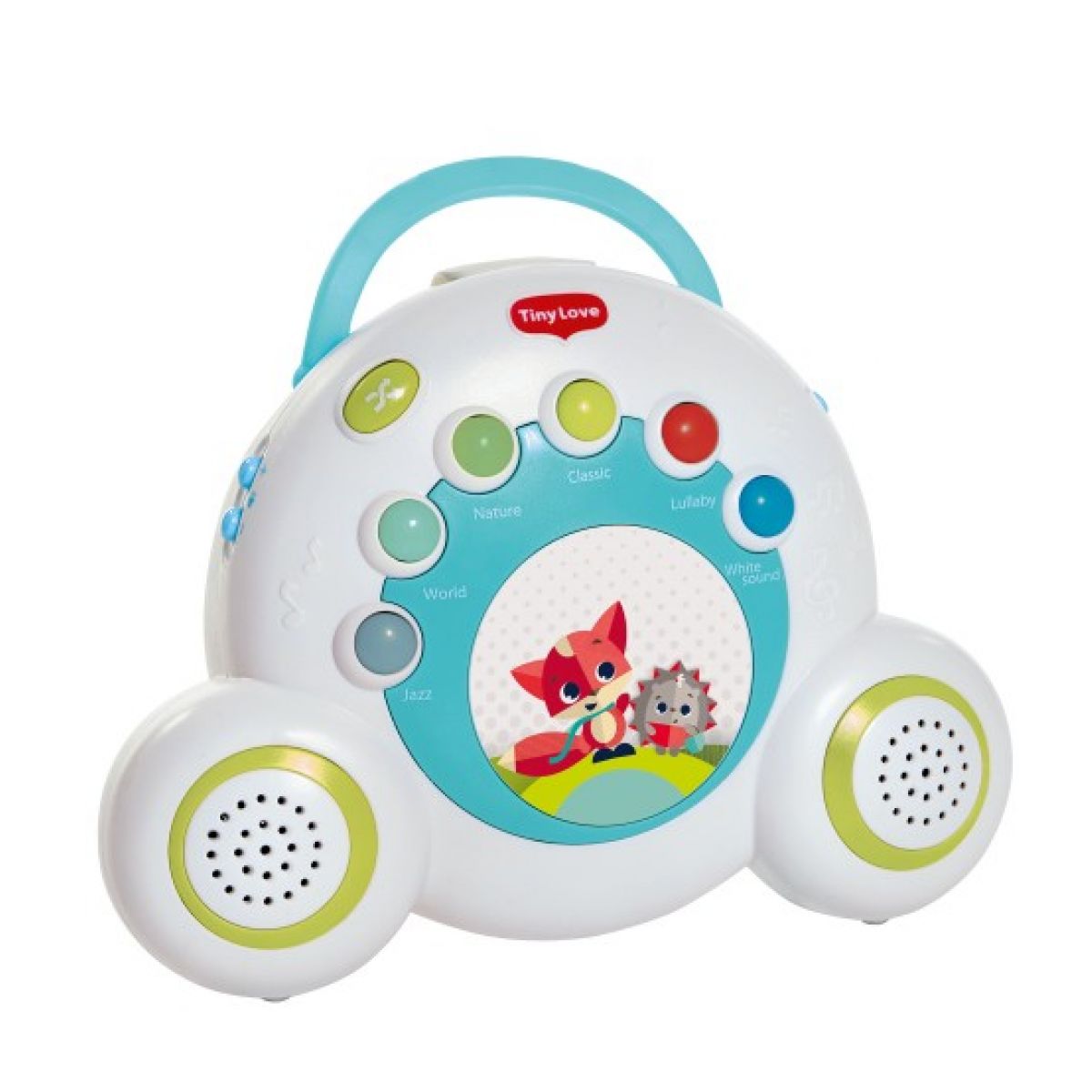 Hudební kolotoč Tiny Love s odnímatelným hudebním přehrávačem pro utišení i zabavení vašeho dítěte v postýlce. Hudební box se dvěma kvalitními reproduktory a nočním světýlkem nabízí 18 různých melodií v 6 různých kategoriích a celkové délce 40 minut. Možnost nastavení hlasitosti hudby. Zavěšené otáčející se postavičky upoutají pozornost dítěte v postýlce.