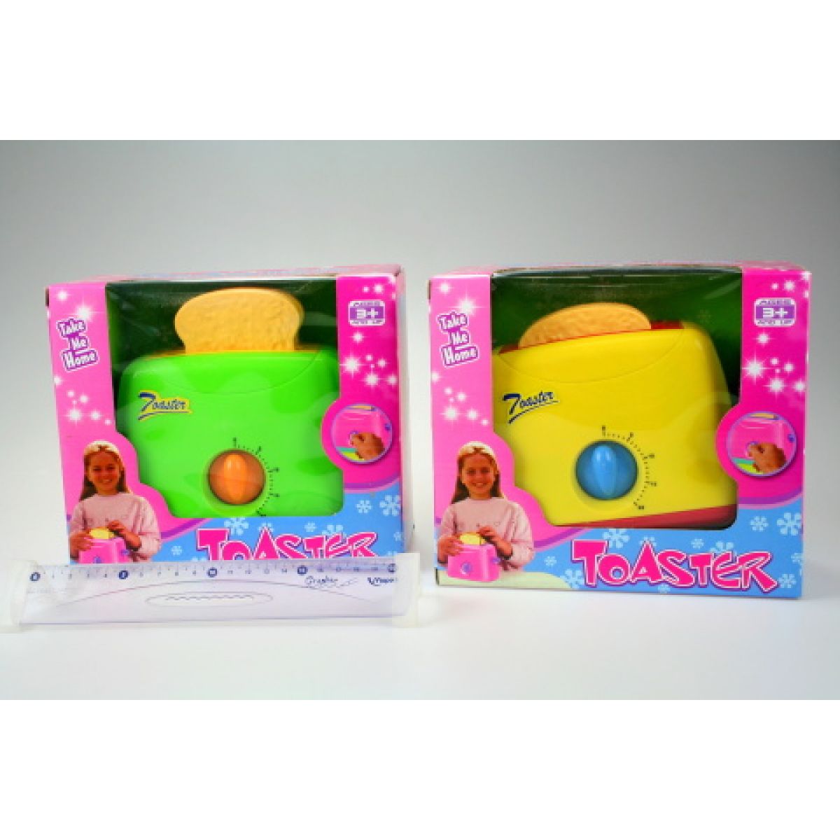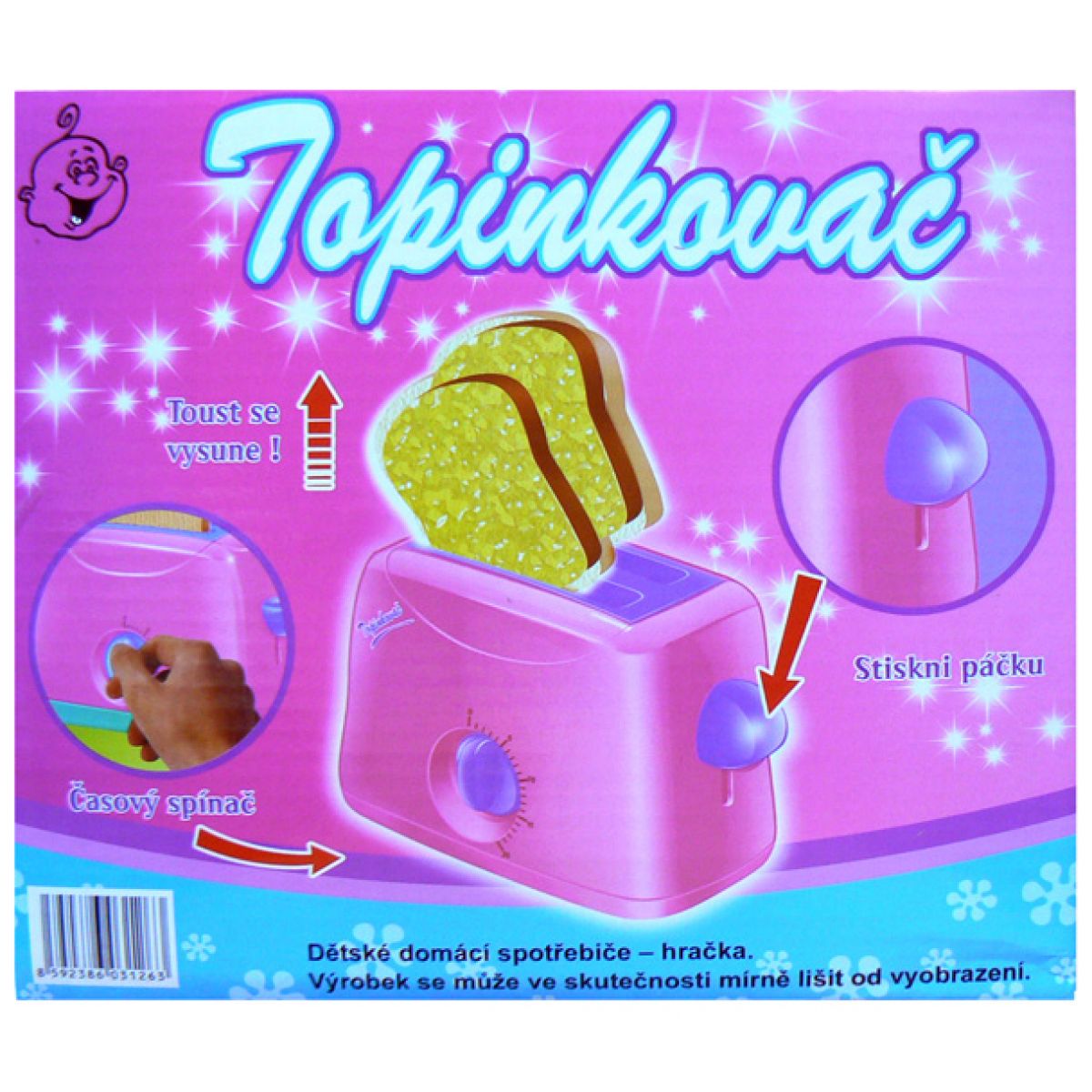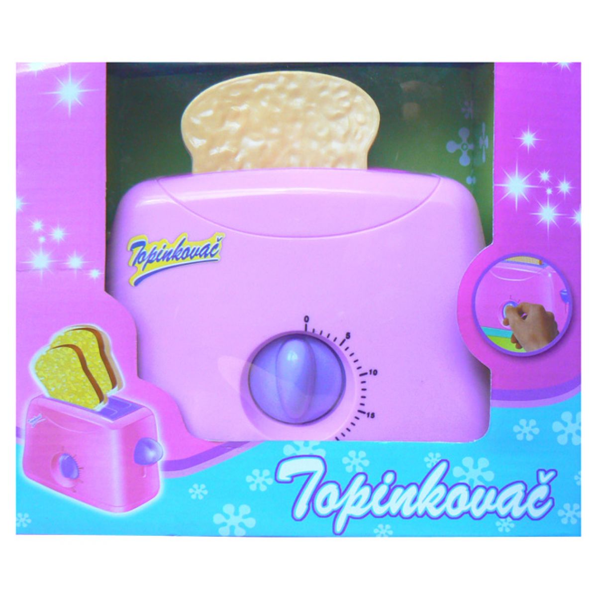 Dětský domácí spotřebič - hračka. Vlož tousty, stiskni páčku a natáhni časovač. Po chvilce tousty vyskočí "hotové".