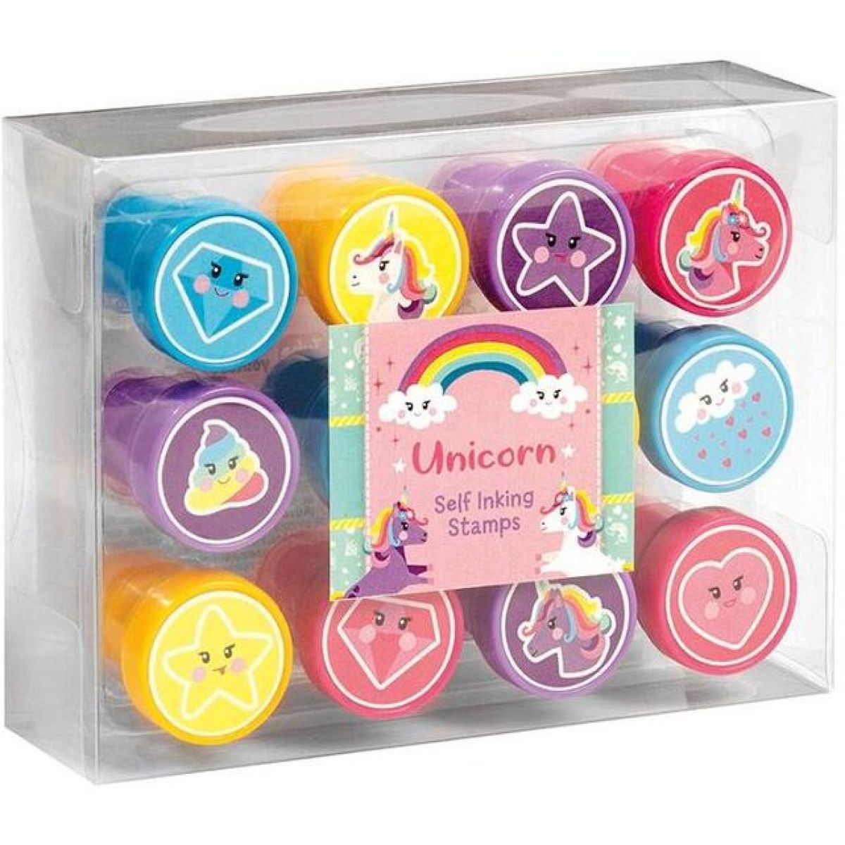 Sada Totum Jednorožec razítka 12 ks je praktická kreativní pomůcka určená pro dětské tvoření, zdobení sešitů, pozvánek či obrázků. Samotiskací inkoustová razítka nabízejí 12 různých motivů s jednorožci a veselými detaily, které potěší každého malého kreativce. Každé razítko má kompaktní velikost 3 cm a díky čtyřem barevným variantám umožňuje rozmanité a barevné tvoření. Balení je přehledně uspořádáno v krabičce o rozměrech 9,5 × 12,5 × 4 cm, což usnadňuje ukládání i přenášení.