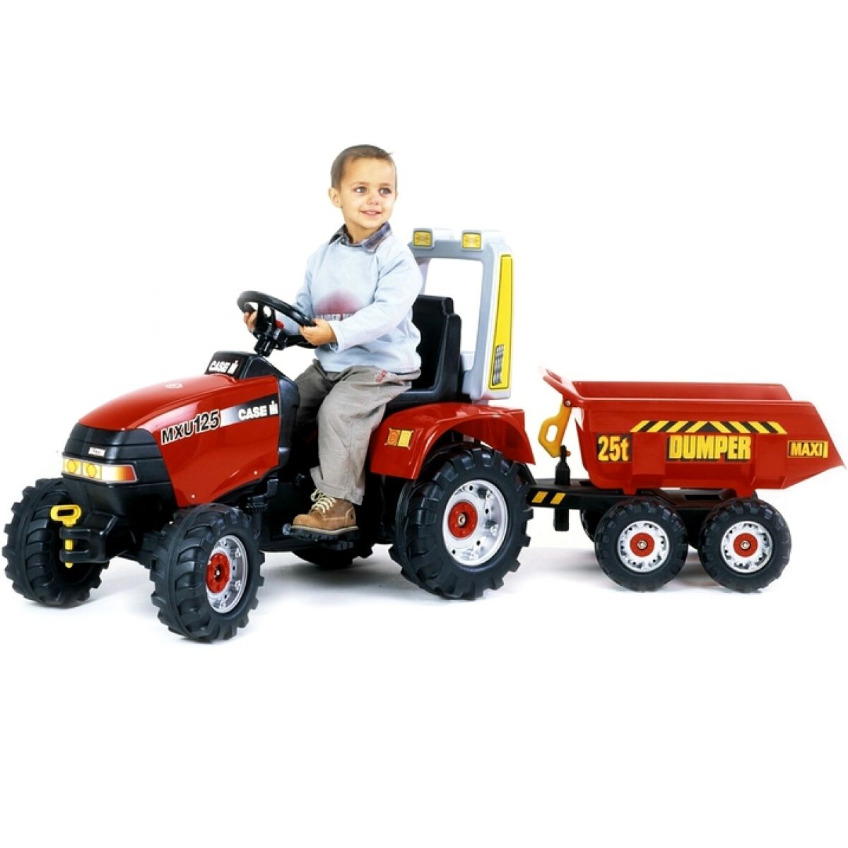 Plastový šlapací traktor červené barvy "Case MXU 125" s červeným přívěsem "Dumper MAXI"