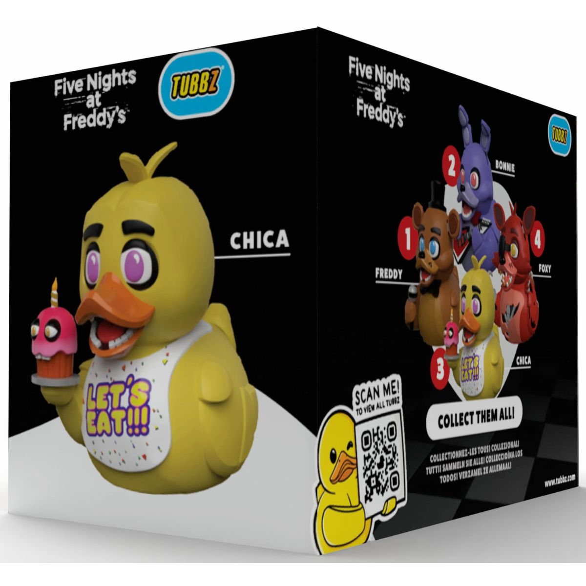 Sběratelská kachnička TUBBZ inspirovaná postavou Chica z hororové série Five Nights at Freddy’s je vyrobena z vysoce kvalitního plastu.