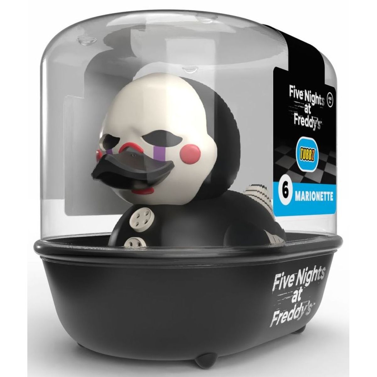 Tubbz kachnička FNAF – Marionette (první edice) je oficiálně licencovaný sběratelský produkt určený pro fanoušky série Five Nights at Freddy’s. Kachnička je vyrobena z PVC materiálu, má cca 9 cm a vyniká detailním a precizním zpracováním.