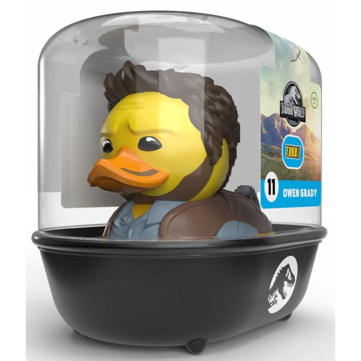 Tubbz kachnička Jurský Svět – Owen Grady (první edice) je oficiálně licencovaný sběratelský produkt určený pro fanoušky filmové série Jurský Svět. Kachnička je vyrobena z PVC materiálu, má velikost cca 9 cm a vyniká detailním a precizním zpracováním.