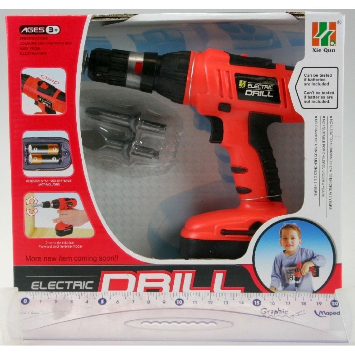 Vrtačka má pravý a levý chod + 3 nástavce (vrták, šroubovák plochý a křížový).