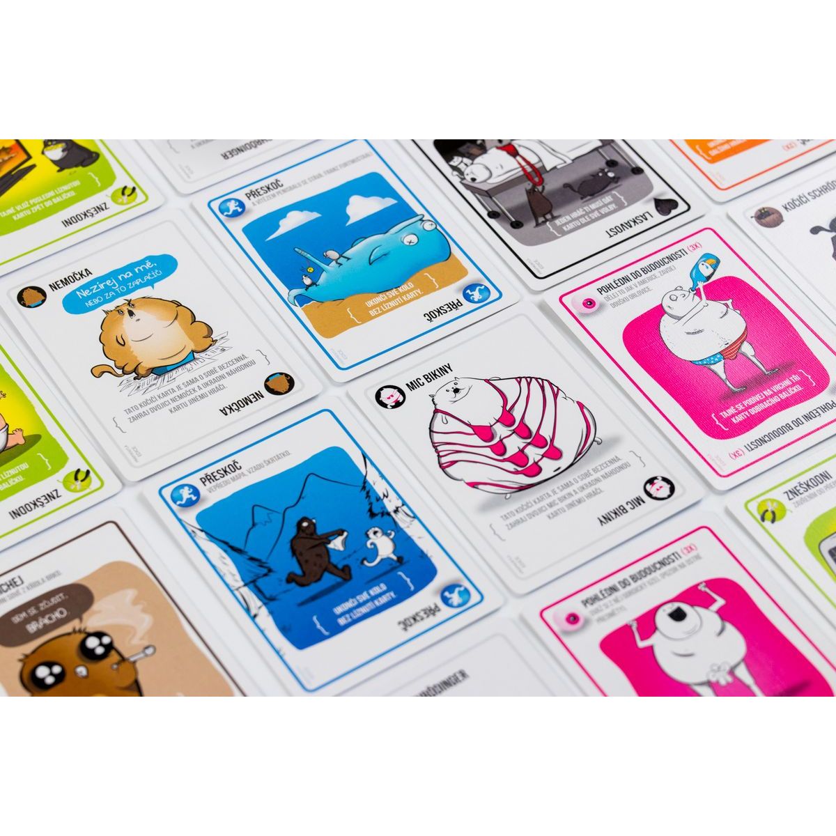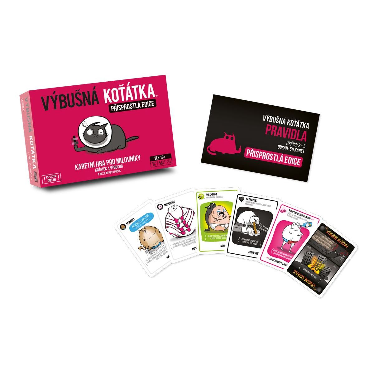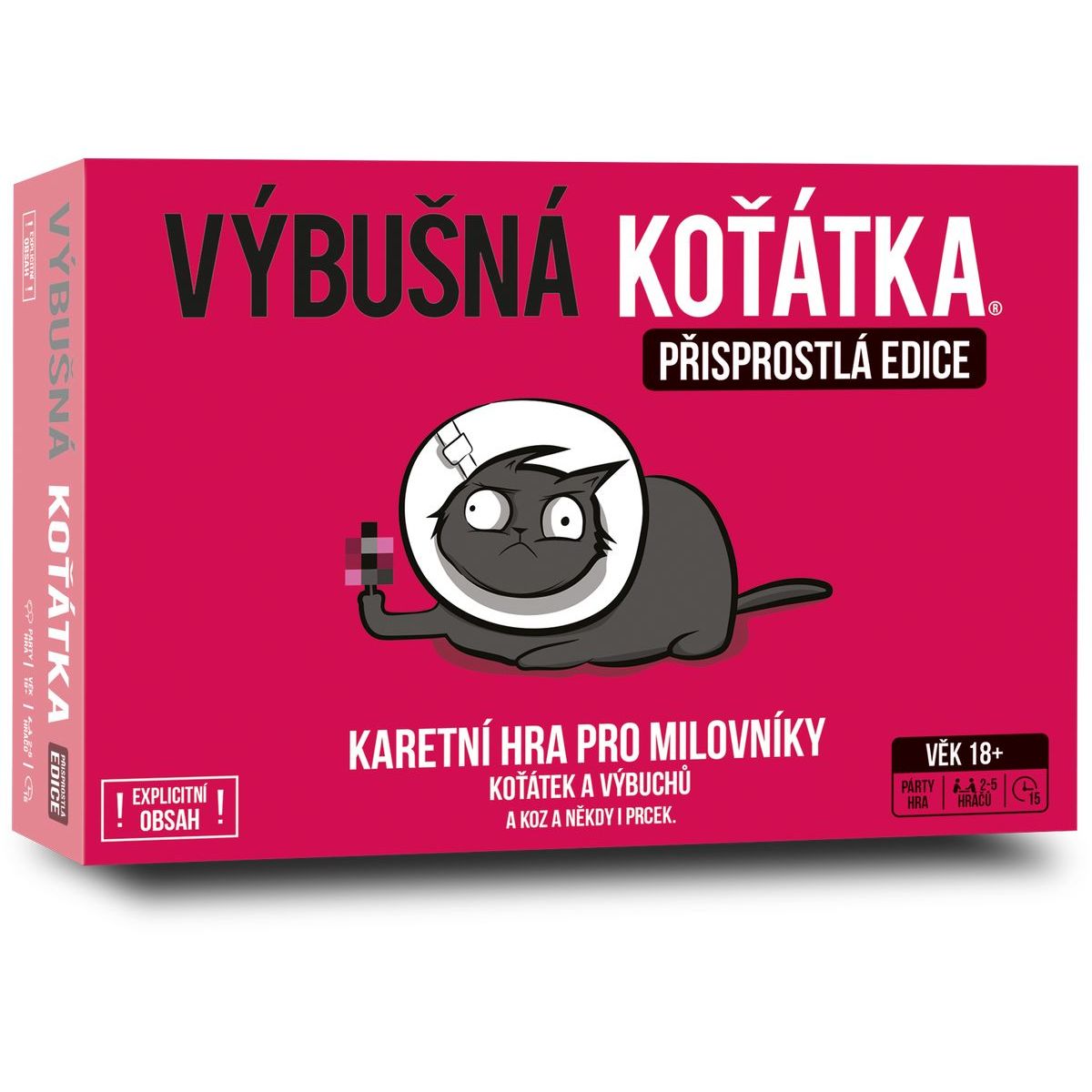 Výbušná koťátka: Přisprostlá edice představují rozšířenou verzi populární strategické karetní hry založené na mechanismu postupného dobírání a eliminace hráčů. Tato edice je určena výhradně dospělému publiku a zachovává kompletní herní systém původní hry, avšak s výrazně upraveným grafickým zpracováním, které posouvá vizuální styl do odvážnější a humorně drsnější roviny. Hráči se střídají v dobírání karet, dokud některý nevytáhne Výbušné koťátko, které jej vyřadí ze hry – pokud jej ovšem nezachrání karta Zneškodni. Ostatní karty nabízejí možnost manipulovat s balíčkem, vyhýbat se riziku nebo jej strategicky přesunout na soupeře.