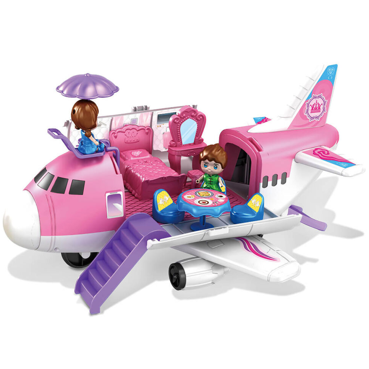 Součástí balení jsou figurky, nábytek do letadla, díly a nálepky pro sestavení, a také obrázkový návod uvedený na obalu.