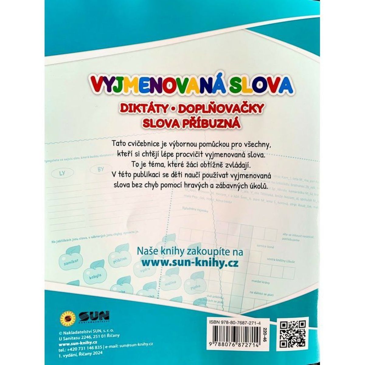 Cvičebnice Zábavná cvičebnice – Vyjmenovaná slova je vzdělávací publikace určená dětem od pěti let, která slouží k systematickému procvičování vyjmenovaných slov a slov příbuzných. Obsahuje pestrou škálu úkolů, jako jsou diktáty, doplňovačky a křížovky, doplněné o srozumitelná vysvětlení významu jednotlivých slov.