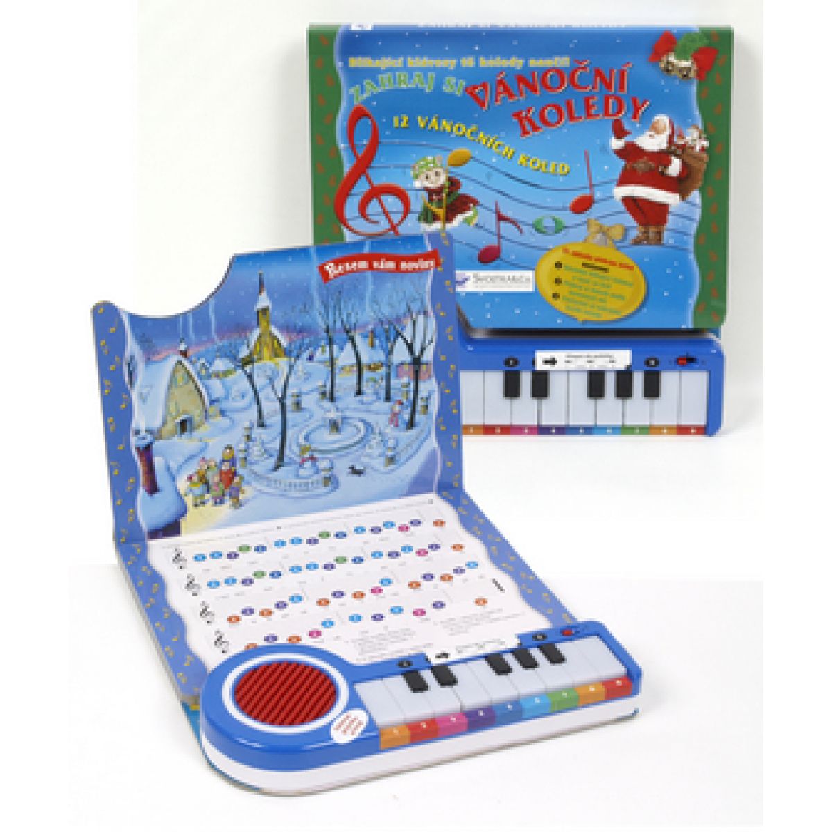 Tato knížka obsahuje 12 oblíbených vánočních koled snadných k zahrání – Štěstí, zdraví, pokoj svatý, Slyšte, slyšte pastuškové, Nesem vám noviny, Narodil se Kristus Pán, Dej Bůh štěstí, Jak jsi krásné neviňátko, My tři králové, Veselé vánoční hody, Tichá noc, Štědrej večer nastal, Chtíc, aby spal a Pásli ovce valaši. Ke knížce je přiloženo pianko, na kterém je možné si koledy přehrát, zahrát si je "vlastnoručně" podle not, nebo za pomoci funkce blikajících kláves následovat svítící klávesy a melodii si procvičit. Kniha je doplněna krásnými ilustracemi, které navozují vánoční atmosféru.