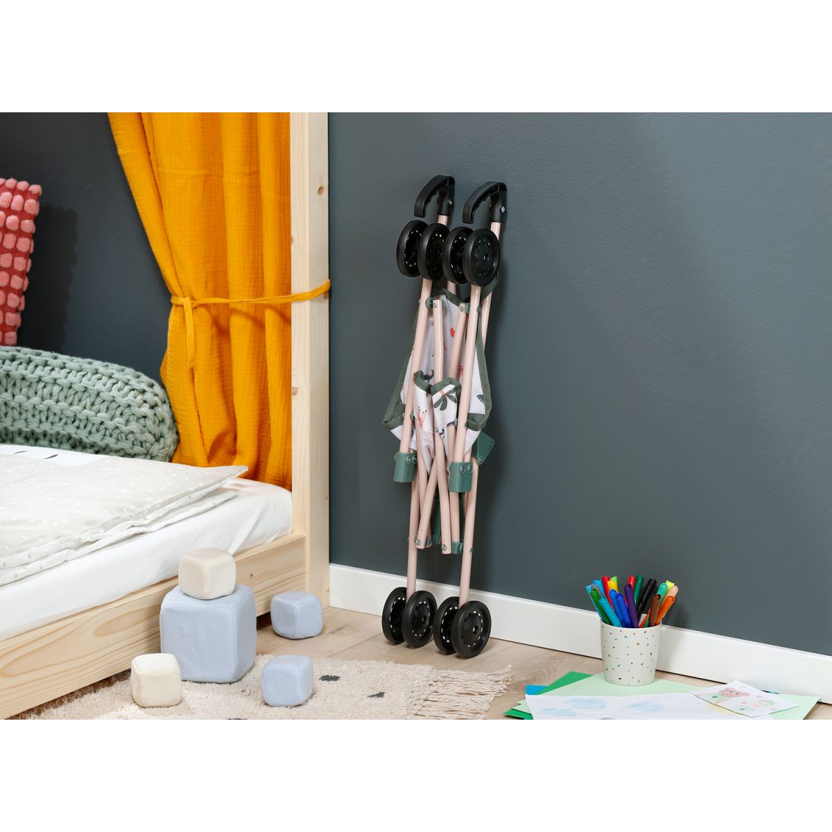 Jeho hlavní výhodou je snadná skladnost – po návratu z procházky lze kočárek jednoduše složit a uložit tak, aby nezabíral místo v pokojíčku. Tento model je vhodný pro děti, které chtějí dopřát své panence pohodlné cestování.
