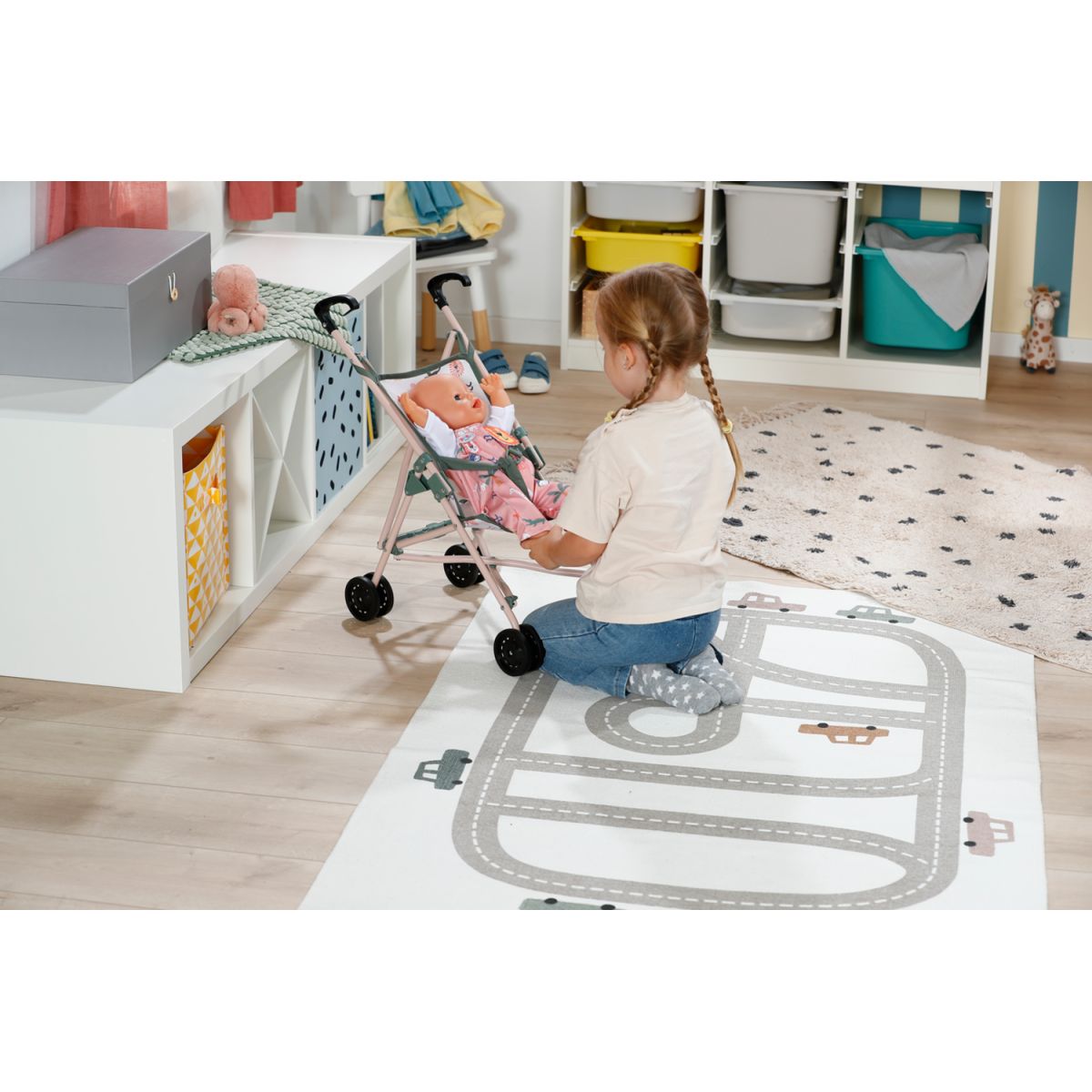 BABY born Kočárek hole je praktický a lehký sportovní kočárek, ideální pro menší děti. Díky bezpečnostním pásům zůstane panenka během jízdy vždy v bezpečí. Kočárek má madlo ve výšce 53 cm, což zajišťuje pohodlné ovládání i pro mladší děti.